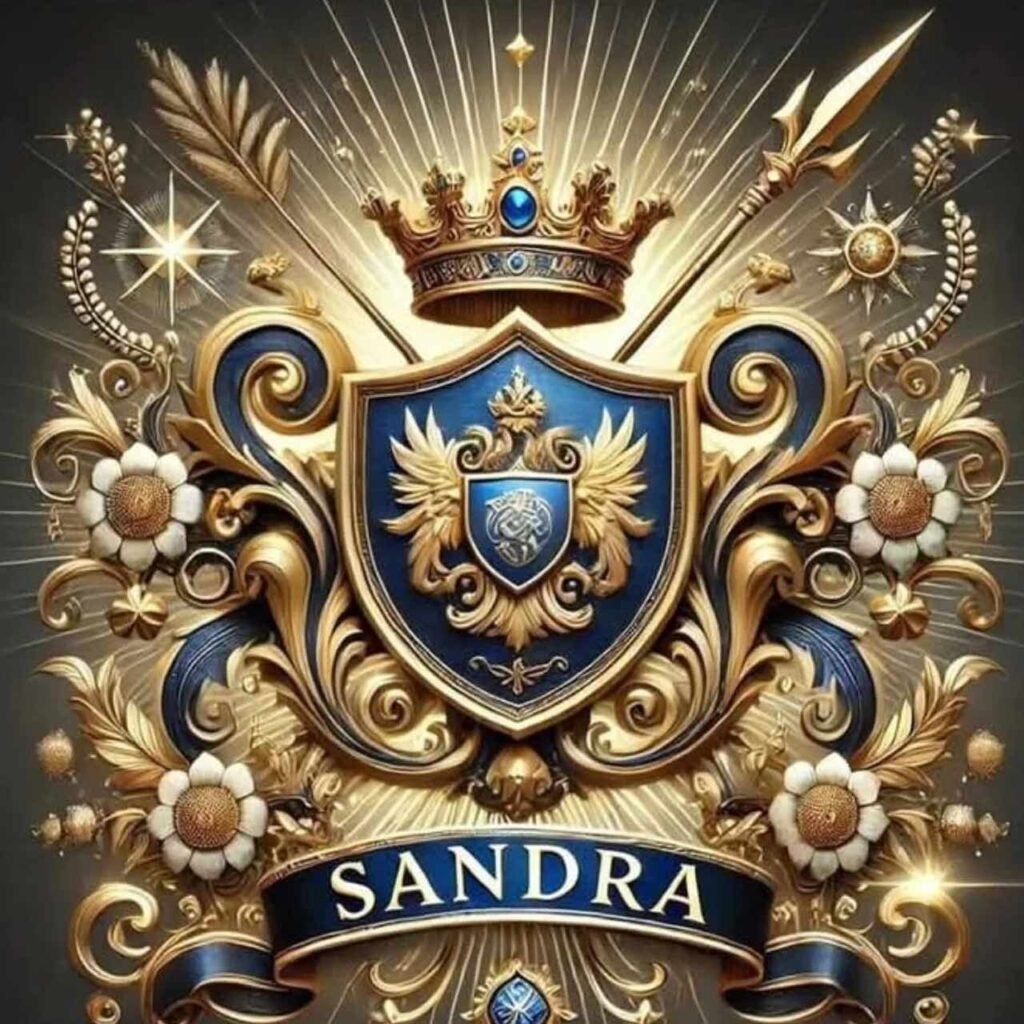 En heráldica, un escudo diseñado para el nombre Sandra, podría incluir elementos como un escudo protector o una lanza, simbolizando su significado original de defensa. Detalles como estrellas podrían representar guía e inspiración, mientras que colores como el dorado y el azul reflejarían nobleza, serenidad y grandeza.